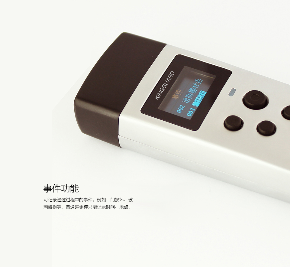 唯實(shí)互聯(lián)巡更中文機(jī)3代,鋅鋁合金電鍍外殼,雙色OLED顯示屏, 陽光下仍然清晰可見,巡邏導(dǎo)航:自動(dòng)提示下一巡檢地點(diǎn)名稱, 本機(jī)查看巡邏記錄、事件、巡邏人員、鬧鈴等。