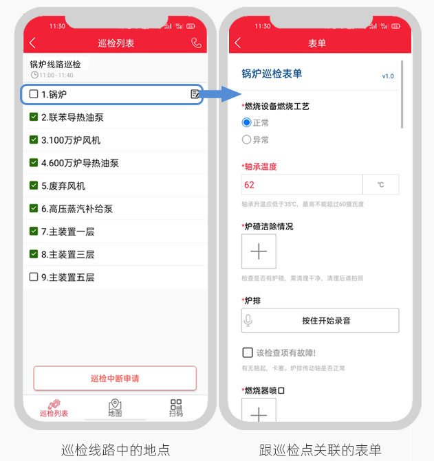1、巡檢過程中,讀取巡更點自動彈出關(guān)聯(lián)表單。