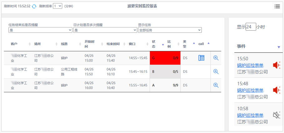 當(dāng)表單中包含不合格檢查項時,“實時監(jiān)控”屏幕上會自動彈出報警提醒